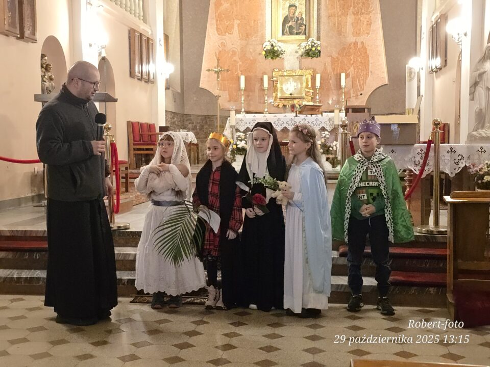 Następnie w kościele, odbyła się prezentacja postaci świętych i błogosławionych Kościoła, w które przebrali się chętni uczestnicy Orszaku. Prezentacji przyglądała się szkolna komisja na czele z Panią Dyrektor, która oceniła najlepsze stroje. Wszyscy biorcy udział w konkursie otrzymali pamiątkowe nagrody i wyróżnienia. Uroczystość Wszystkich Świętych jest dniem radosnym, dlatego warto to wyjątkowe święto przeżywać z nadzieją, że i my dołączymy po śmierci do Orszaku Wszystkich Świętych w niebie.